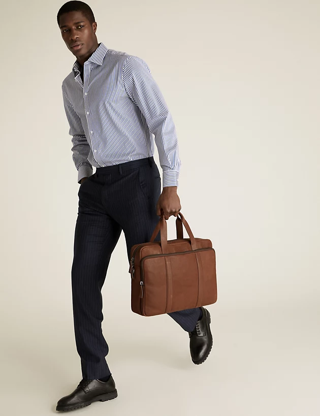 Keep your essentials neatly stowed with this leather briefcase. Featuring handle straps and a detachable cross-body strap for multiple carrying options. Front pocket for extra storage. Made with sustainably sourced