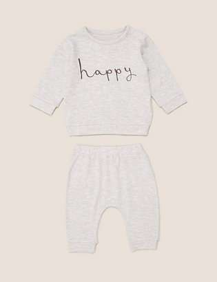 Get kids into their happy place with this super-soft outfit. 'Happy' slogan is embroidered on the top in a handwritten font. The top has shoulder poppers for easy dressing. The pull-on joggers have a pocket on the back. Fabric blend