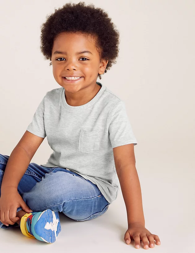 This casual t-shirt is made from pure cotton, to keep kids cool and comfy while they play. Regular fit, with short sleeves and a classic round neck. Finished with a chest pocket detail. Made with organic cotton. All of the